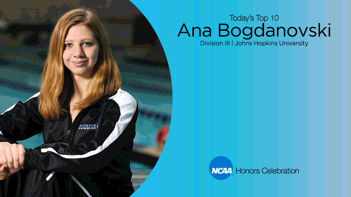 Ten-time NCAA champion Ana Bogdanovski was a force in the pool and in the classroom during her collegiate swimming career at Johns Hopkins University. In four years, she earned 23 All-America honors from the College Swimming Coaches Association of America, won 11 conference championships and set seven school records. The team captain also set an example of academic excellence. Bogdanovski received back-to-back Capital One Division III Academic All-America of the Year At-Large honors in 2014 and 2015. She conducted research on the effects of air pollution, participated in clinical observation shadowing doctors, and received an NCAA Postgraduate Scholarship, which she is using to begin medical school at Rutgers University in the fall of 2016.