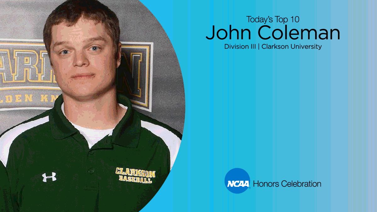 Competing in both men's basketball and baseball at Clarkson University, John Coleman earned multiple accolades for athletics performance. The Liberty League named him Player of the Year in both sports during his senior year, making him the first non-track and field or cross country athlete in conference history to be selected for the honor in two sports. Coleman finished his basketball career as an all-time school leader in points, field goals made, field goal percentage and steals. He finished his baseball career ranking in the top 10 in school history in hits, runs, batting average and on-base percentage. In 2014-15, he earned Capital One Academic All-American of the Year honors. Coleman also graduated from the school's honors program, earning several awards for mathematics achievement, while finding time to volunteer as a math tutor and baseball instructor. Coleman is now working on a Ph.D. in philosophy at the University at Buffalo, the State University of New York.