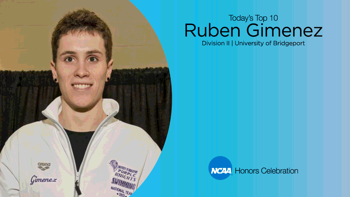 Four-time individual NCAA champion Ruben Gimenez holds six University of Bridgeport swimming records, including three individual times and three relay times. A 20-time All-American, he won 24 Metropolitan Conference championships and led his team to four top-three finishes at the conference championships. His academic accolades were also plentiful. Gimenez earned back-to-back Division II Capital One Men's Academic All-America of the Year At-Large honors, and was a four-time College Swimming Coaches Association of America Academic All-American. Gimenez also led his team out of the pool, serving on the student-athlete advisory committee and volunteering with several local organizations. He interned at Goldman Sachs Group, Inc., in 2014, and is now working with BlackRock, Inc., the largest asset manager in the world.