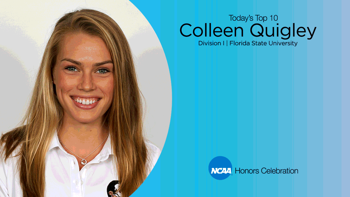 Colleen Quigley, a captain for the track and cross country teams at Florida State University, helped propel her teams to multiple conference championships. The nine-time All-American won the 2015 national championship in the 3,000-meter steeplechase with the third-fastest time in NCAA history. She was also recognized as the 2015 USTFCCCA Outdoor Women's Track Scholar Athlete of the Year. Quigley holds three Florida State and ACC records on the track, and was named the 2013 ACC Women's Cross Country Performer of the Year and 2015 ACC Women's Outdoor Track Performer of the Year. Quigley was unstoppable in academics as well. She was named the ACC Scholar-Athlete of the Year for cross country and indoor and outdoor track and field, and earned Capital One Academic All-America honors in 2014 and 2015. She also received the Golden Nole Award twice in recognition of her contributions made on the field, in the classroom and in the community, which included spearheading a department-wide Soles for Souls shoe drive, collecting shoes for the needy.