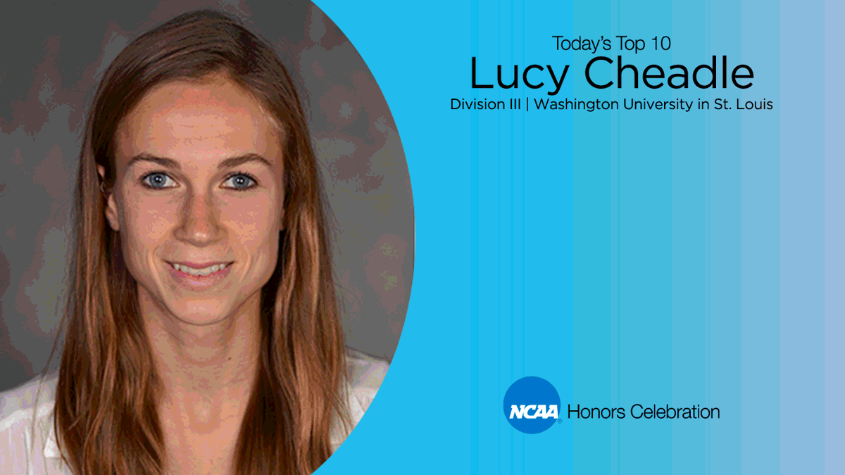 Washington University in St. Louis distance runner Lucy Cheadle dominated on the cross country course, on the track and in her studies. A three-time individual NCAA champion (twice in the 3,000 steeplechase and once in the indoor track and field 5,000), she was also a member of the 2011 Division III women's cross country champion team. The United States Track and Field and Cross Country Coaches Association recognized Cheadle with All-America honors 13 times. She holds three school records – in the indoor 3,000 and 5,000 events, and the outdoor 3,000 steeplechase. In 2015, Cheadle earned Capital One Division III Cross Country/Track and Field Academic All-America of the Year honors, after being recognized with Capital One Academic All-America honors in 2014 and 2015. She also served on her campus student-athlete advisory committee and volunteered with Engineers without Borders.